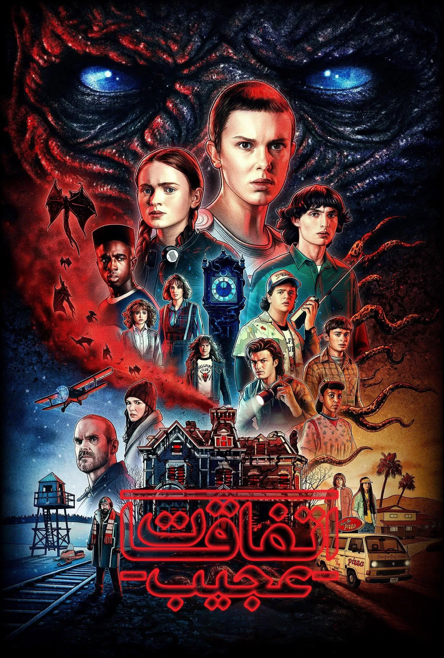 گویندگان: مینو غزنوی (وینونا رایدر / جویس بایرز)، منوچهر والیزاده (دیوید هاربور / جیم هاپر)، سیما رستگاران (میلی بابی براون / جین هاپر، ال، یازده)، سعید شیخزاده (فین ولفهارد / مایک ویلر)، آبتین ممدوح (گیتن ماتارازو / داستین هندرسون)، حسین سرآبادانی (کیلب مکلاگلین / لوکاس سینکلر)، حامد بیطرفان (نوا اشنپ / ویل بایرز)، الهام جعفرنژاد (سیدی سینک / مکس میفیلد)، مریم جلینی (ناتالیا دایر / نانسی ویلر)، وحید منوچهری (چارلی هیتون / جاناتان بایرز)، مجتبی فتحاللهی (جو کری / استیو هرینگتون)، مریم شاهرودی (مایا هاک / رابین باکلی)، حامد عزیزی (برت گلمان / موری بامن)، مهسا عرفانی (پریا فرگوسن / اریکا سینکلر)، رضا آفتابی (متیو موداین / دکتر مارتین برنر)، پرویز ربیعی (پاول ریزر / دکتر سام اونز)، خشایار شمشیرگران (جیمی کمپبل باور / وکنا)، صنم نکواقبال (کارا بونو / کارن ویلر)، پویا فهیمی (ادواردو فرانکو / آرگایل)، علی بهرامی (جوزف کویین / ادی مانسون)، محمدرضا لبیب (شرمن آگوستوس / سرهنگ جک سالیوان)، حامد عزیزی (جو کرست / تد ویلر)، کریم بیانی (نیکولا جوریکو / یوری)، امیرعباس پیام (میسون دای / جیسون کارور)، رهبر نوربخش (وایدوتاس مارتینایتیس / زندانبان ملنیکوف)، سارا جواهری (امیبث مکنالتی / ویکی)، مهیار ستاری (جوئل استوفر / وین مانسون)، محسن بهرامی (تام ولاشیا / دیمیتری آنتونوف)، خشایار شمشیرگران (داکر مونتگمری / بیلی هارگرو)، مهدی امینی (راب مورگان / رئیس پاول)، امیر منوچهری (جان رینولدز / افسر کالاهان)، فائقه مرادی (گابریلا پیزولو / سوزی بینگهام)، زندهیاد حمید منوچهری (رابرت انگلاند / ویکتور کریل)، نسرین اسنجانی (گریس ون دین / کریسی)، شیلا آژیر (الودی گریس اورکین / آنجلا)